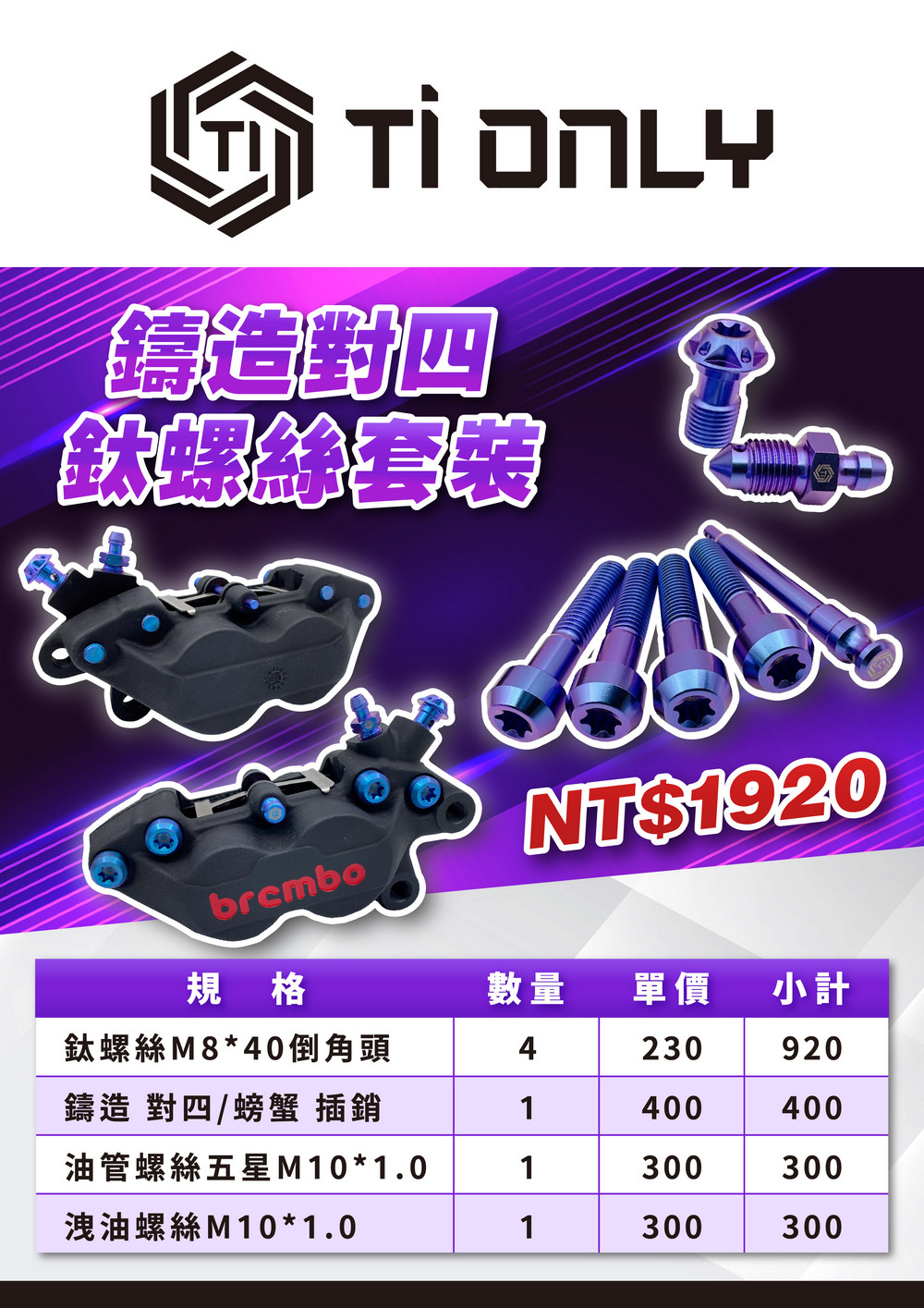 Brembo鑄造對四螺絲套裝/藍紫色