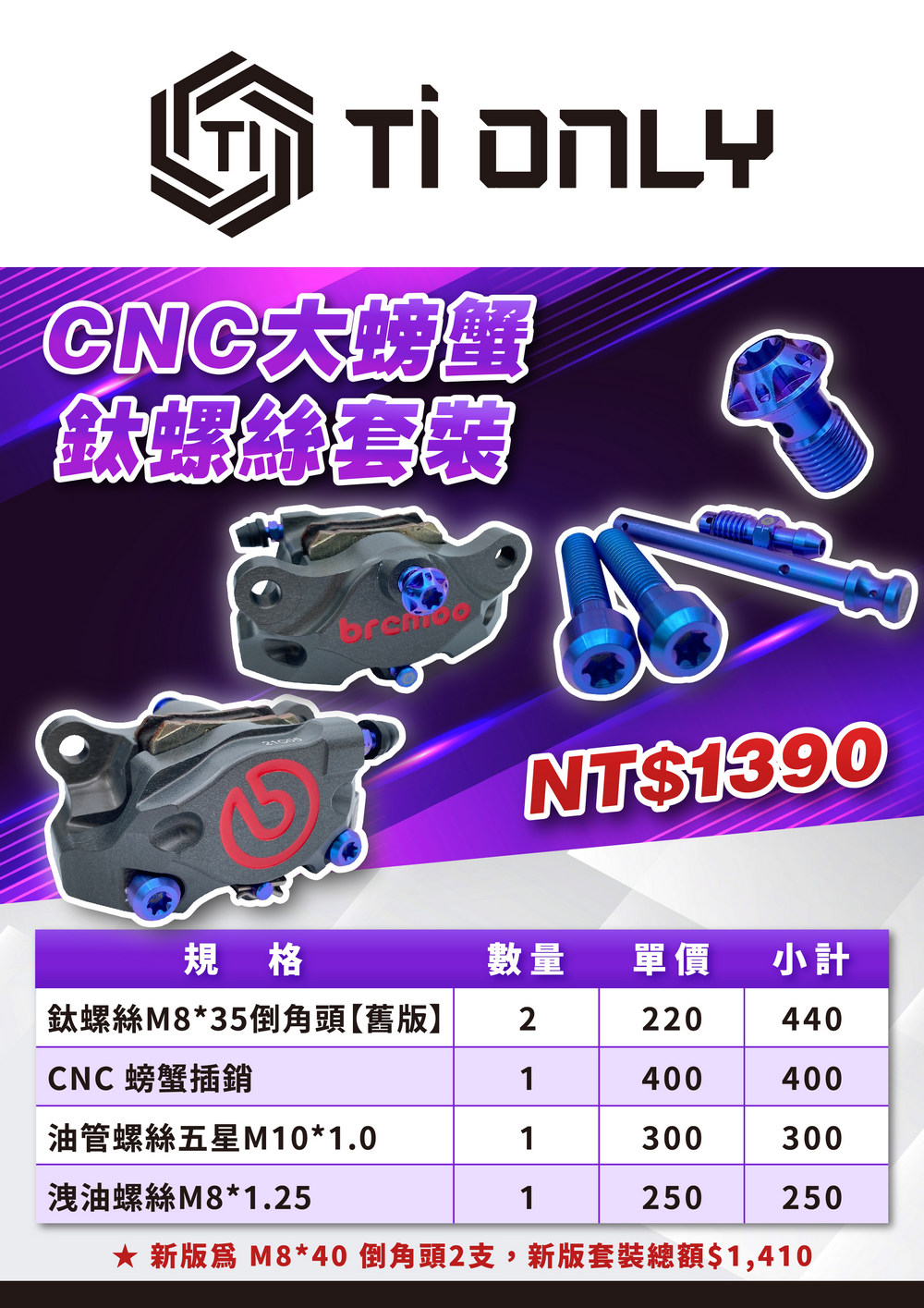 Brembo CNC大螃蟹螺絲套裝/藍紫色