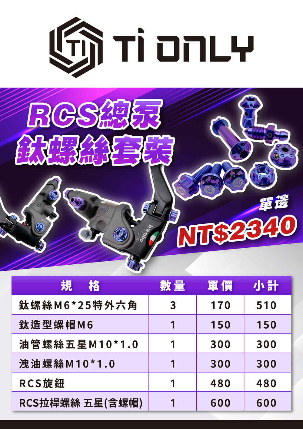 Brembo RCS總泵鈦螺絲套裝-藍紫色(單邊)